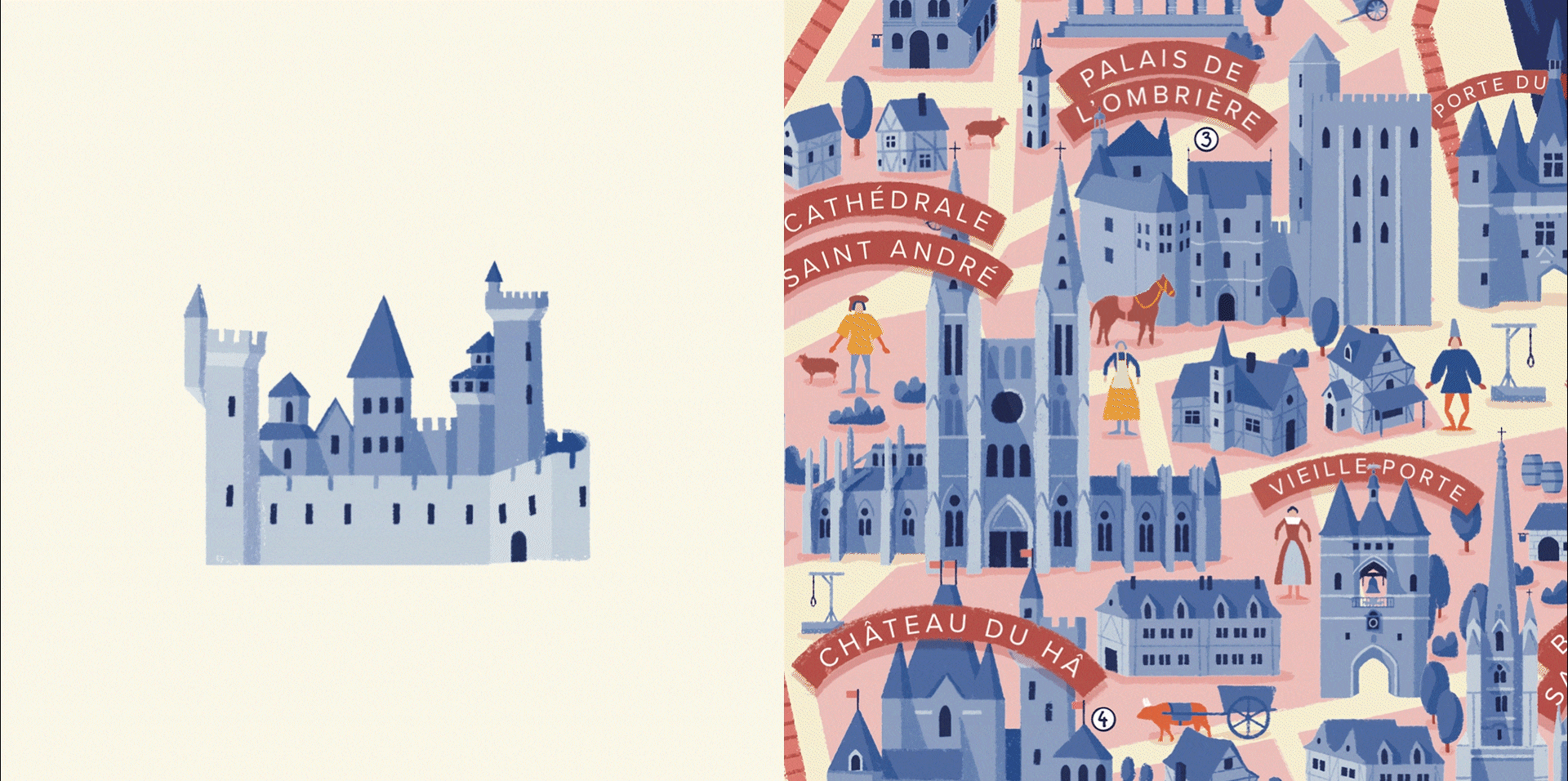 Carte de la ville de Bordeaux au XVIème siècle, représentant les principaux